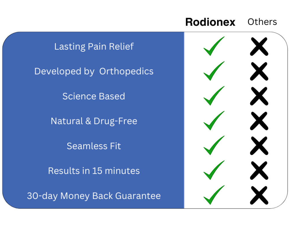 Rodionex comes with a 30-day money-back guarantee because we're extremely confident it'll offer you relief from knee pain. If you're not fully satisfied, we'll return your money.
